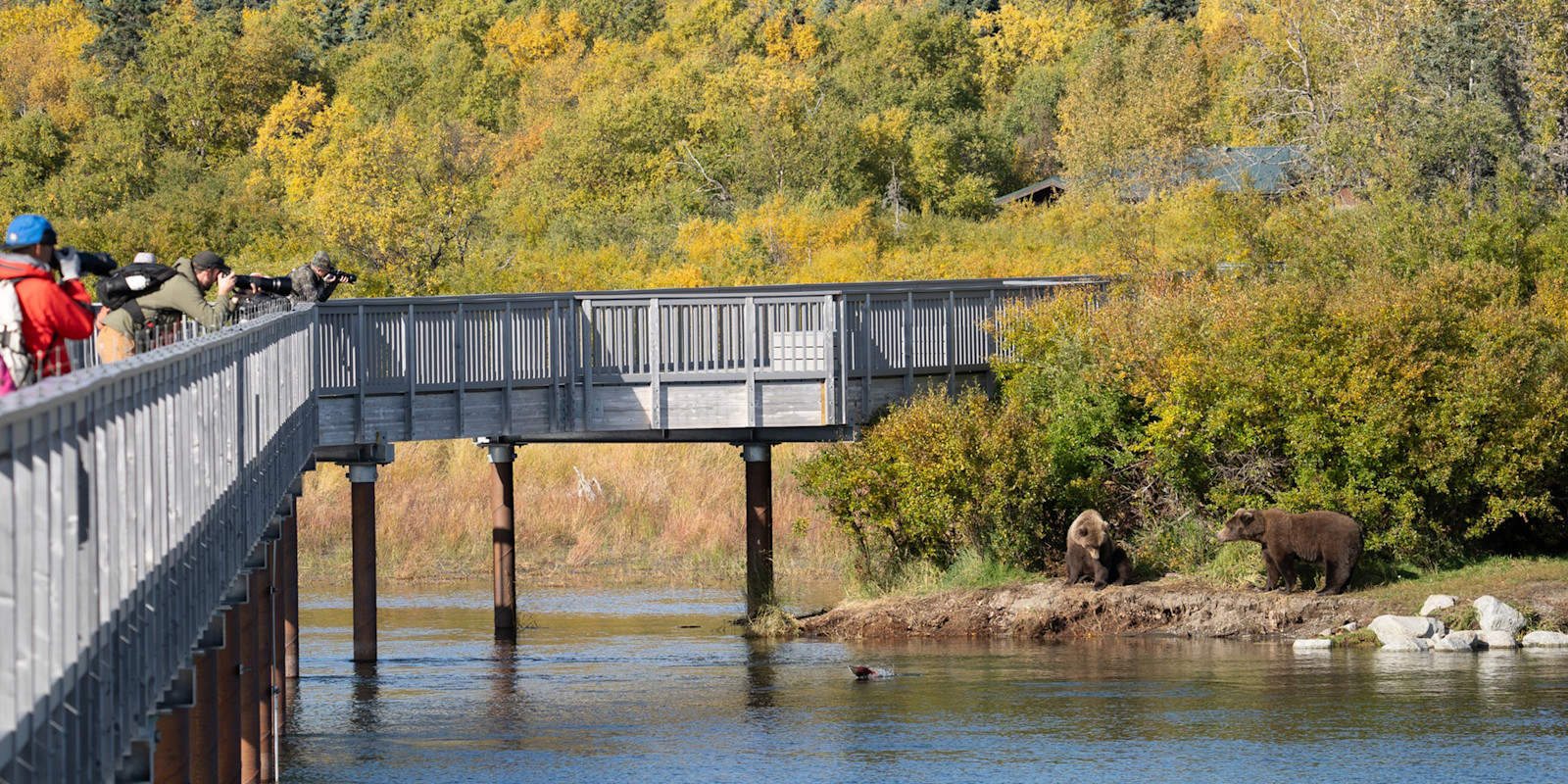 Regardless of when you go, every month offers enchanting views of Katmai’s mountains and encounters with beautiful bears. You may also spot wolves, bald eagles, red foxes, moose and caribou during your trip, and the chance to see fascinating interactions between grizzlies and other wildlife grants onlookers a once-in-a-lifetime opportunity.