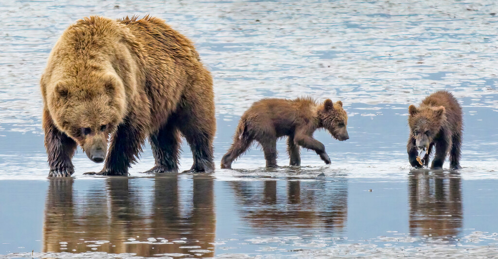 In June, brown bears converge on the coast of Katmai National Park to socialize, breed and forage. Eager to replenish their diet after months of hibernation, the grizzlies congregate on the tidal flats to dig for razor, butter and steamer clams and in the meadows to feed on protein-rich sedges and other vegetation. The best time to witness play behavior is in early summer, when the bears are not yet focused on fishing for salmon. Mid-to-late June is also the peak of the mating season in Katmai. If you want to see mothers with new cubs, adolescents playfighting and giant males sparring over sows, this is a wonderful time to go.