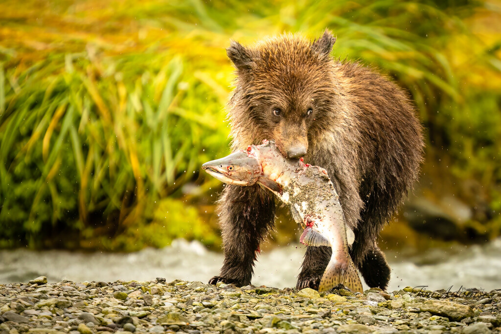 In August, salmon leap from the streams and rivers, and the bears are intent on catching as many as they can—sometimes up to 11 per day! August is a perfect month to go if you want to see the bears fine-tuning their fishing skills. Watching the bears snatch fish from the rapids is enthralling, and photographers will delight in capturing the rush of water alongside the excitement and action of the bears. The grizzlies are hungry for more substantive protein, and you may see territorial spats as they fight for fish.