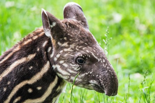 DetailsA spotted lowland tapir calf rustles through the brush among the flat-topped, clustered rock formations, or tepuis, of ...